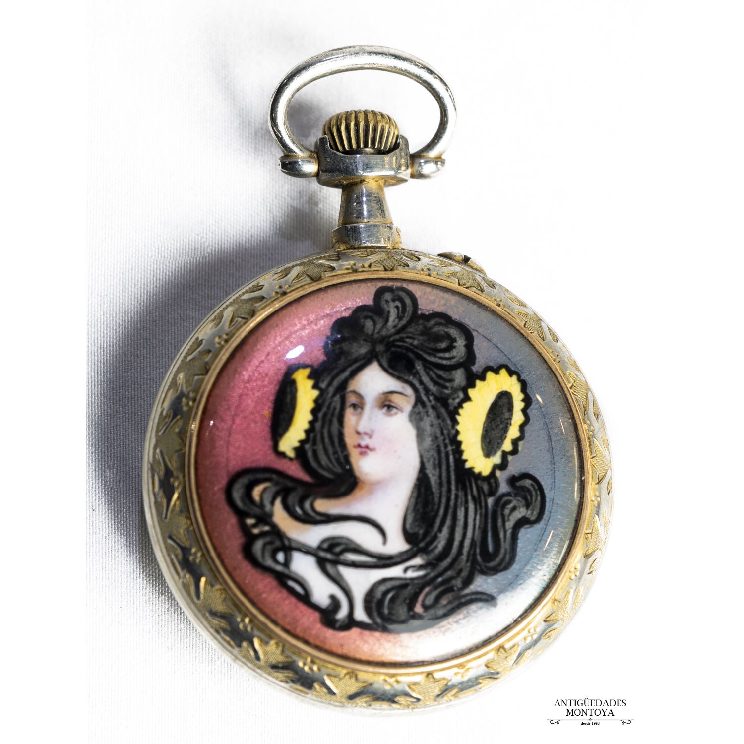 RARO reloj de bolsillo siglo xix con un esmalte en la tapa de atras y pintado alamte em la esfera , un reloj dino de un buen coleccionista por su rareza .